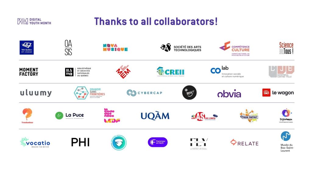 Presented by Montreal Digital Spring, the 7th edition of the Digital Youth Month 2025 was held under the theme “Your Culture, Your Identity!” from February 1 to 28. With the involvement of 32 collaborators, a total of 147 online resources and 108 activities were offered to help develop the digital skills and knowledge of young people across Quebec. Contributors also supported the campaign by encouraging youth to reflect on the impact of digital technologies on cultural content discovery, creation, and online diversity.